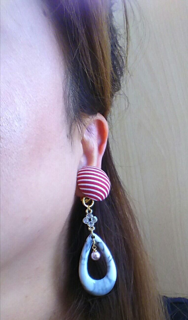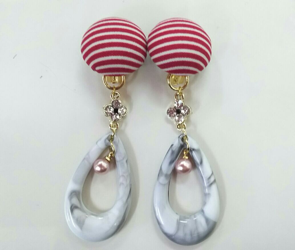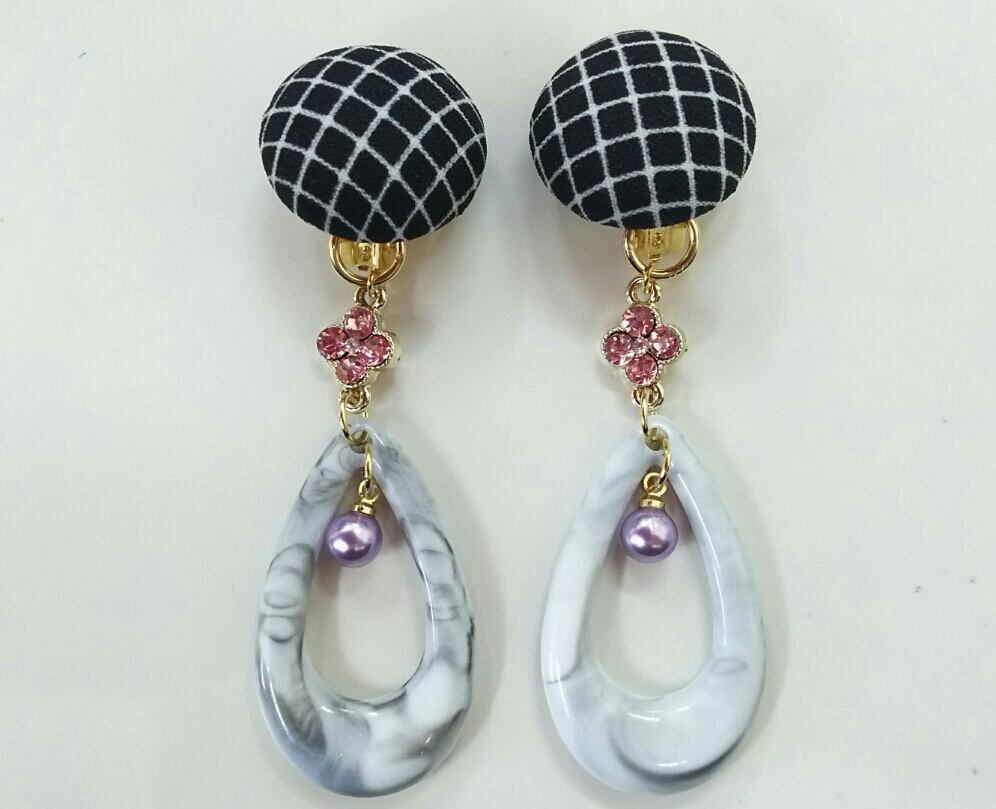 可愛いチェック柄の生地カボションが入荷したので、フープと組み合わせました。春アイテムとして思わず装着したくなるイヤリング。